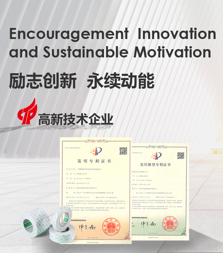具有較強的粘著力和持粘力,對多種材料表面(PP、PE、PC、PVC、ABS、PE、PC、PVC、ABS、鋁材、鋼板)都有較強的粘合力。抗回彈力的性能比其他雙面膠帶優(yōu)異,廣泛應用于各個領域。